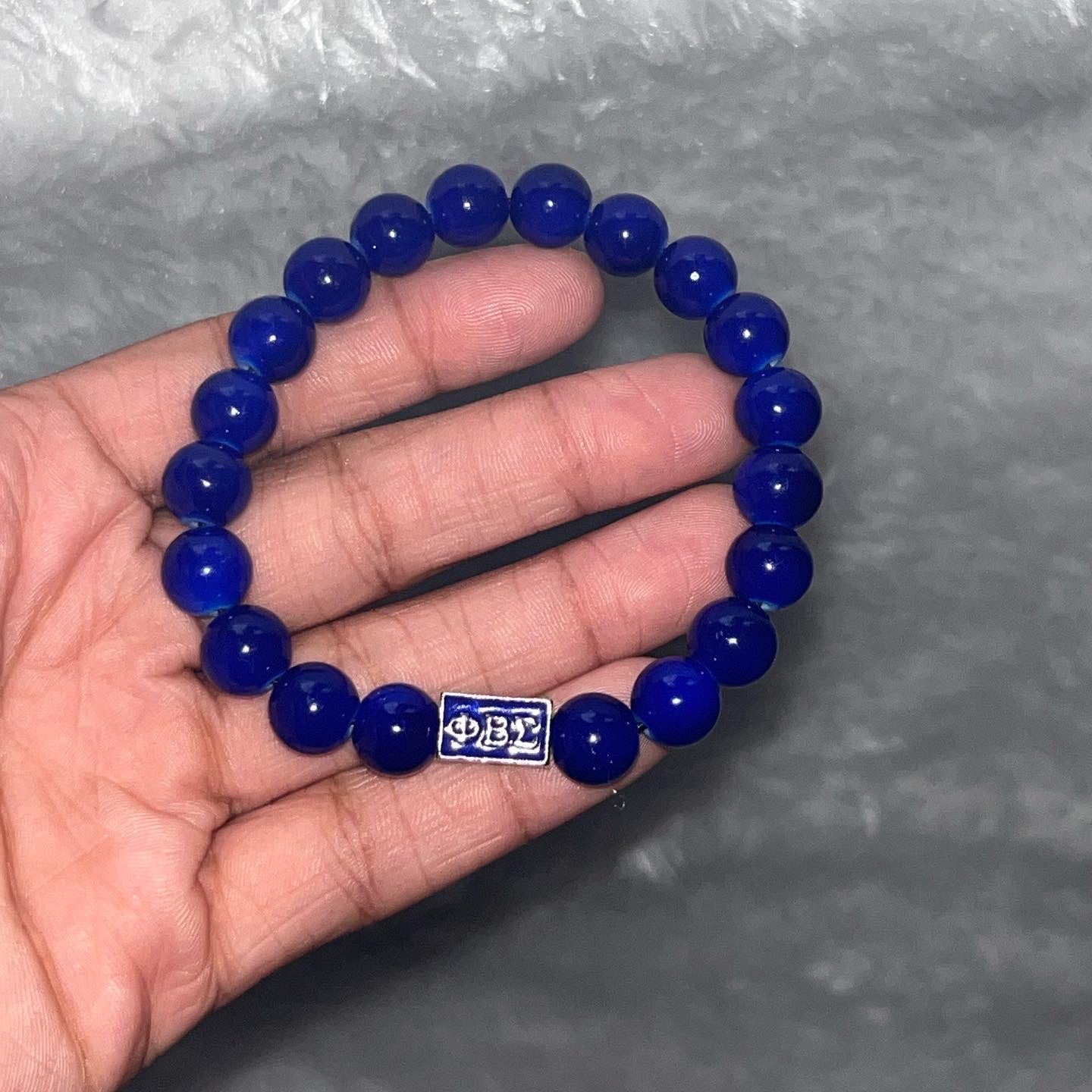 Phi Beta Sigma bracelet with blue beads. Super stretchy with Greek letter pendant.